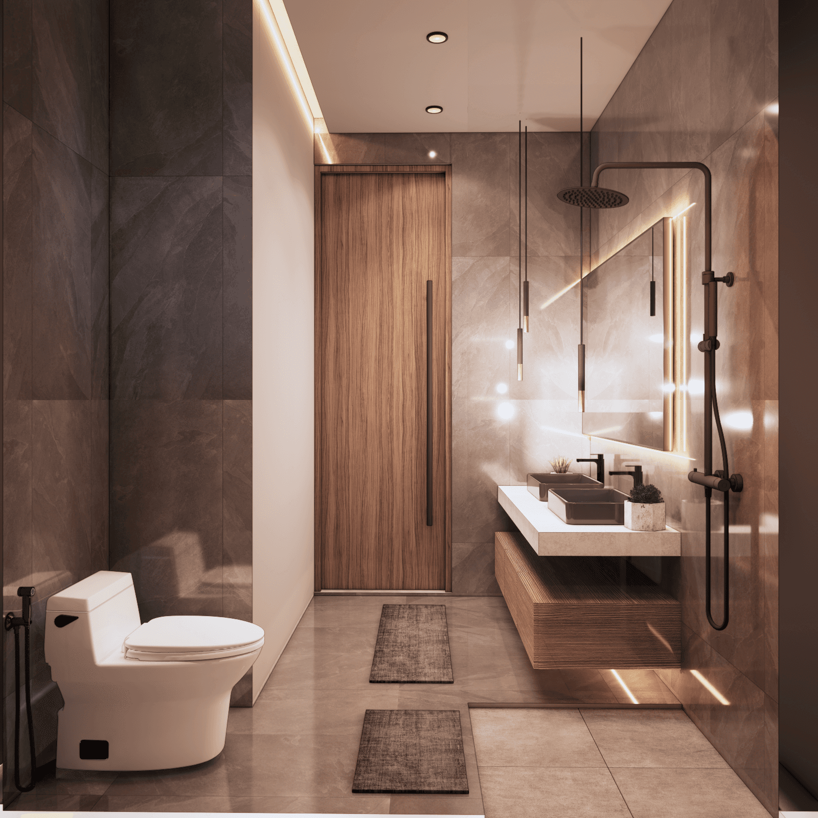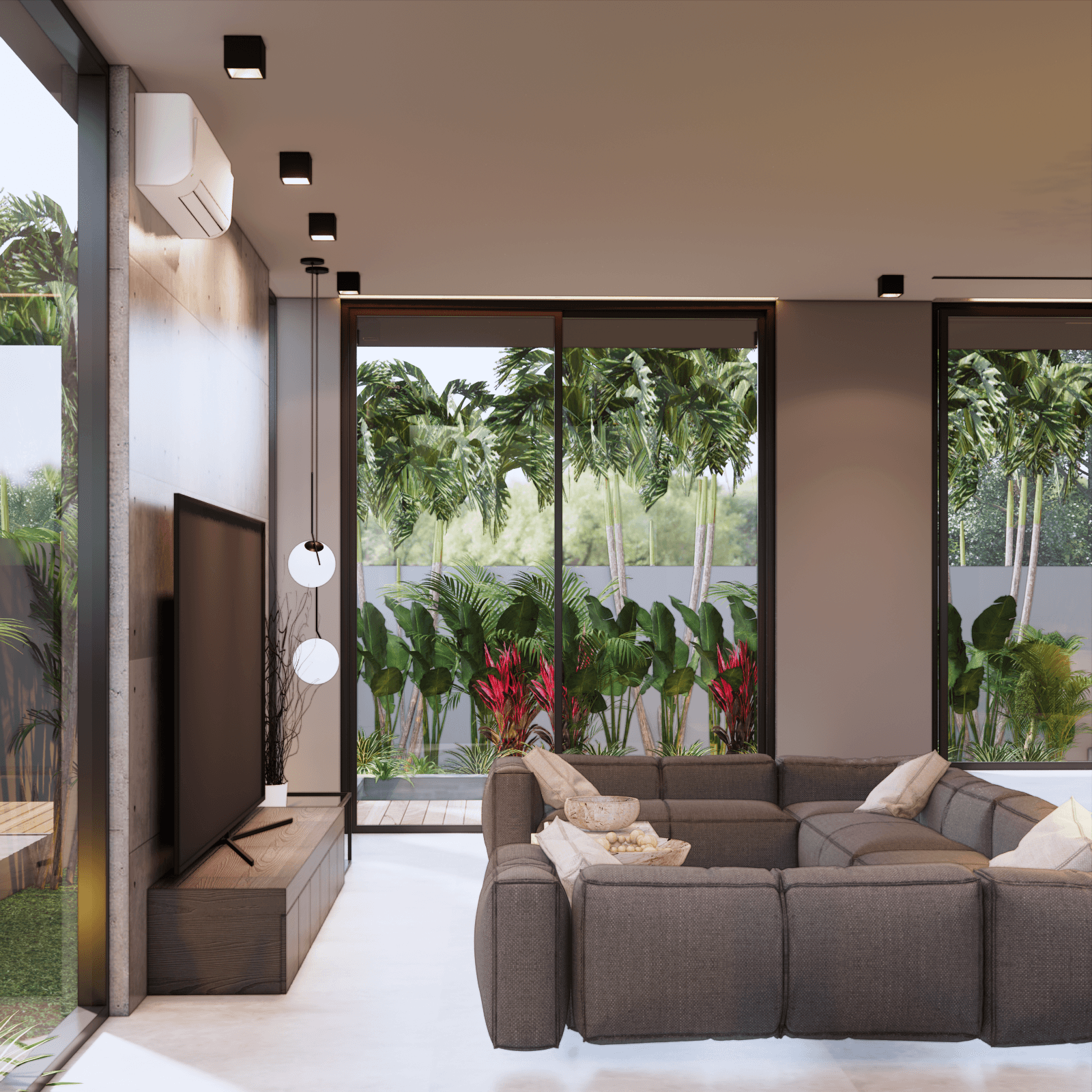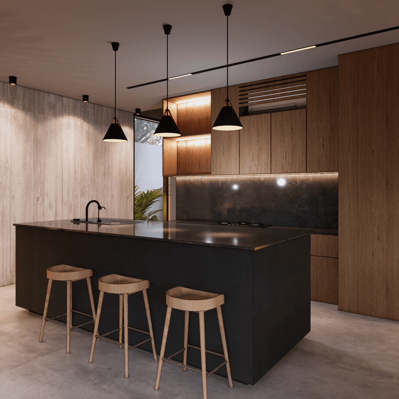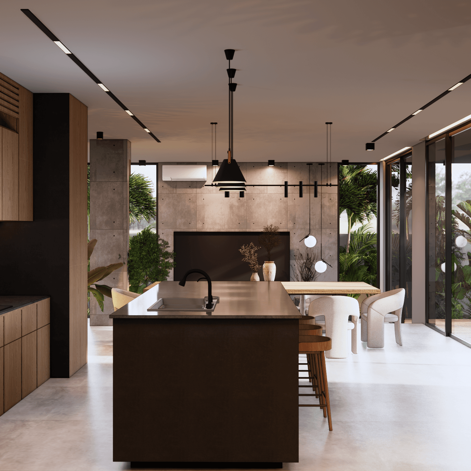 Black Villa is a Luxury 3 bedroom villa, with panoramic sea views across all 3 bedrooms as well as the rooftop. Built upon 225sqm of land, with 477sqm of build, boasting an extremely generous living area of 94sqm. The Ground floor consists of a car port with space for both car and bikes. Walking through the main door you enter the large open living area, with fully equipped kitchen with kitchen island, plus a large dining table to accommodate any event. There is also a communal toilet and storage room. The living area has a vast array of custom made decor, large sofa area with space to add in any extras you’d see fit. Opening the sliding doors to the side of the living area, you have access to the pool and decking area.