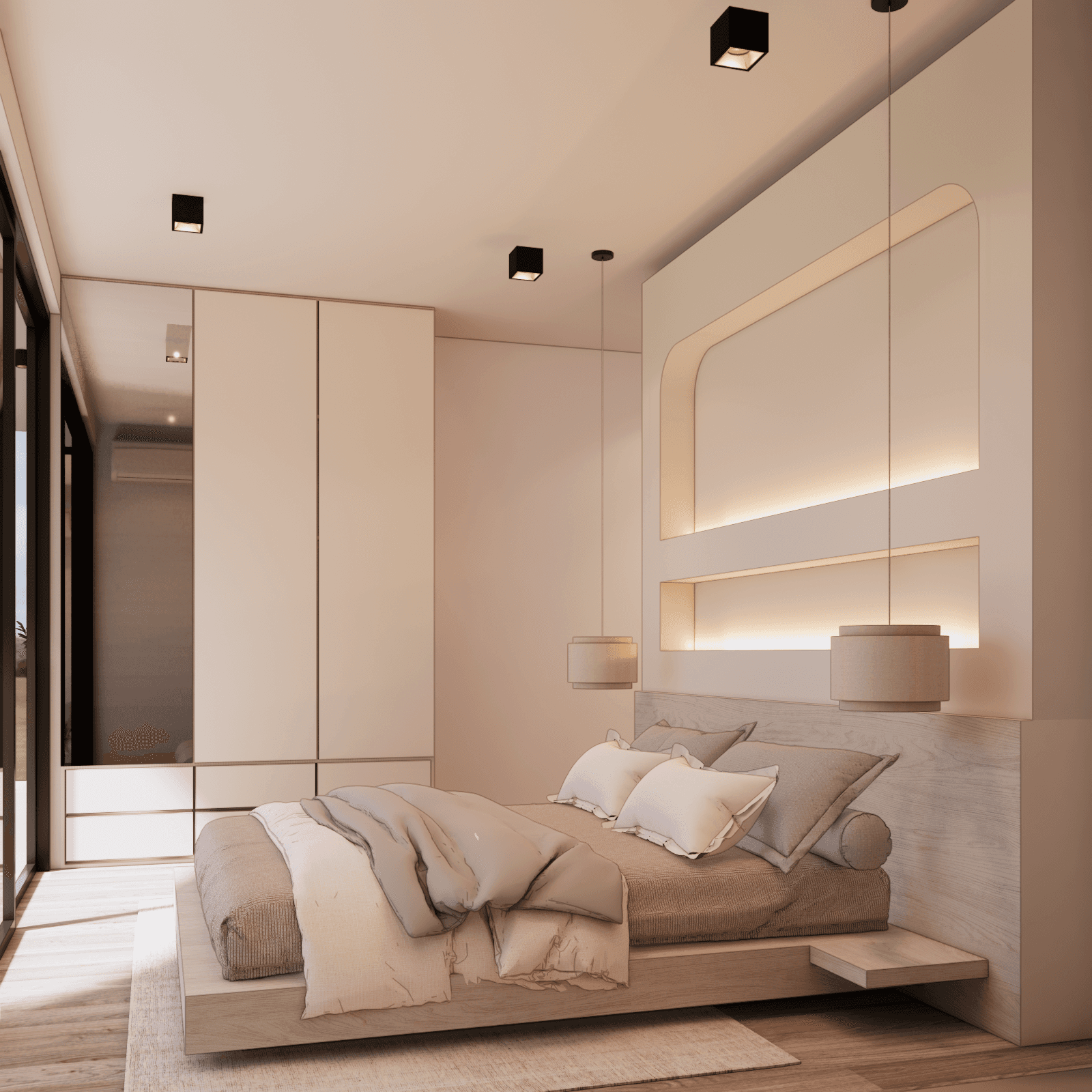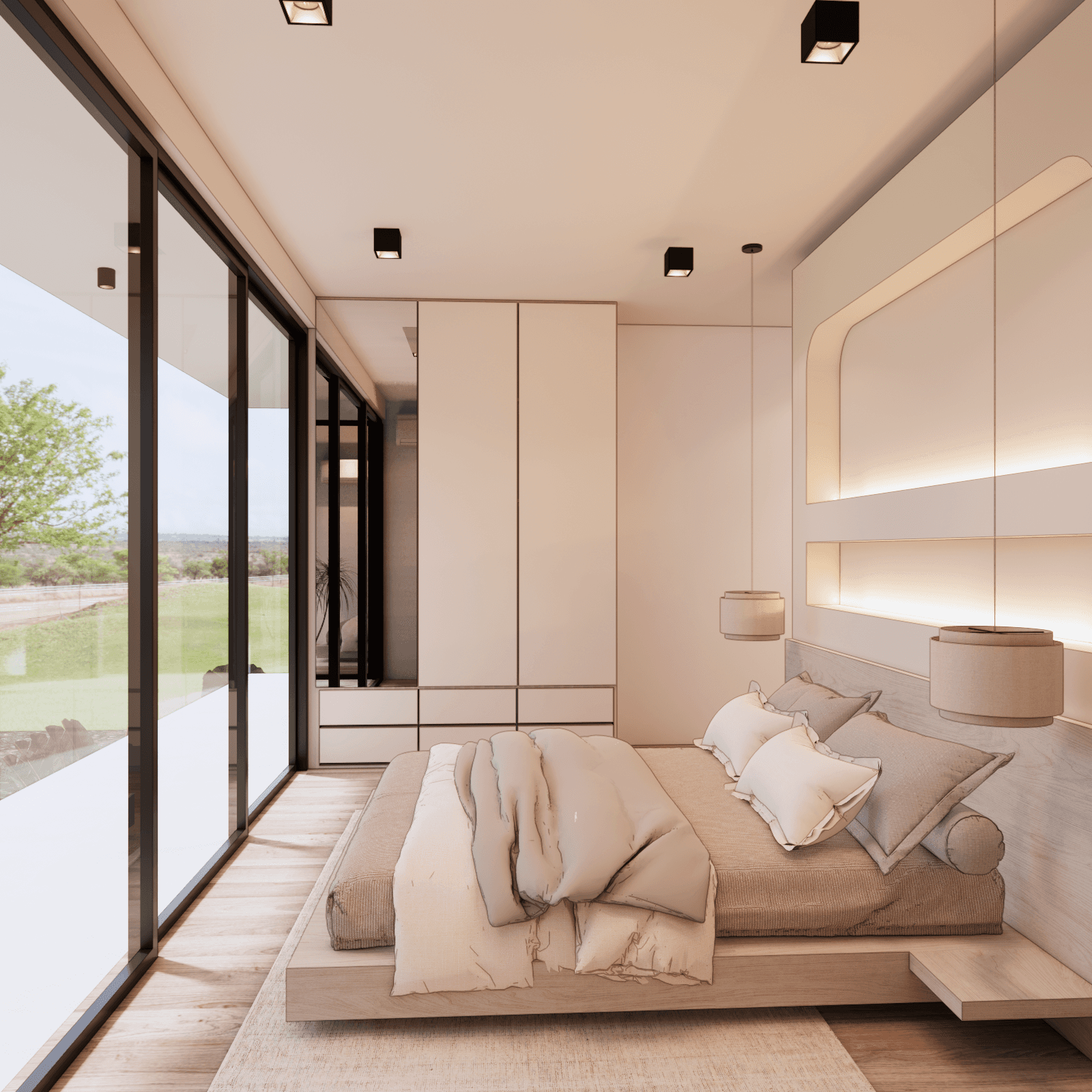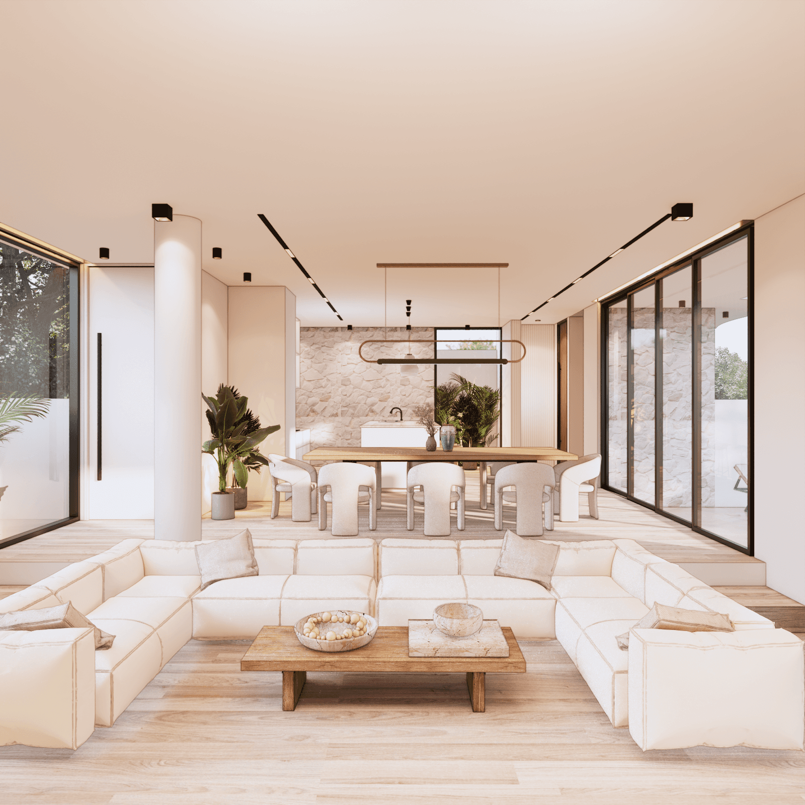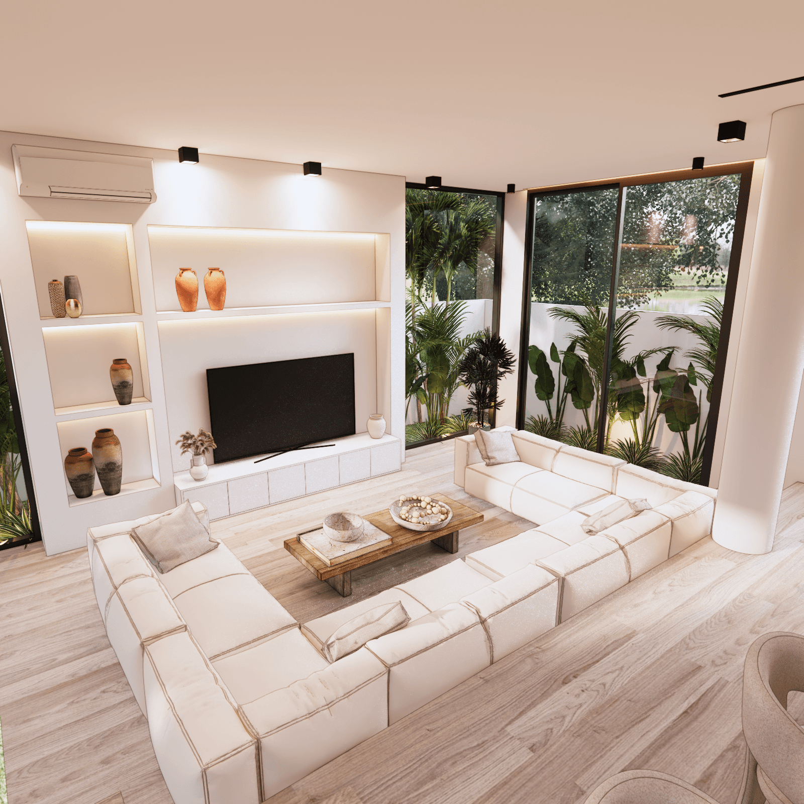 White Villa is a Luxury 3 bedroom villa, with panoramic sea views across all 3 bedrooms as well as the rooftop. Built upon 225sqm of land, with 477sqm of build, boasting an extremely generous living area of 94sqm. The Ground floor consists of a car port with space for both car and bikes. Walking through the main door you enter the large open living area, with fully equipped kitchen with kitchen island, plus a large dining table to accommodate any event. There is also a communal toilet and storage room. The living area has a vast array of custom made decor, large sofa area with space to add in any extras you’d see fit. Opening the sliding doors to the side of the living area, you have access to the pool and decking area.